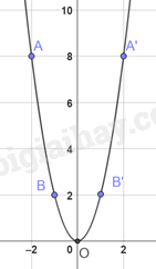 Trên mặt phẳng tọa độ, lấy các điểm A(-2;8), B(-1;2), O(0;0), B’(1;2), A’(2;8)