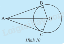 Cho đường tròn O và hai tiếp tuyến của đường tròn (O) tại B và C cắt nhau tại điểm A (Hình 10).