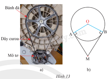 Bánh đà của một động cơ được thiết kế có dạng một đường tròn tâm O, bán kính 15 cm được kéo bởi một dây curoa. Trục của mô tơ truyền lực được biểu diễn bởi điểm M (Hình 13). Cho biết khoảng cách OM là 35 cm.