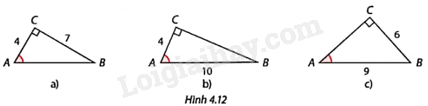 Xác định số đo góc nhọn A của tam giác vuông ABC trong mỗi trường hợp ở Hình 4.12. Làm tròn kết quả đến độ.
