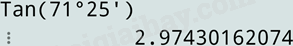 Để tính \(\tan {71^o}25'\), ta lần lượt bấm các nút