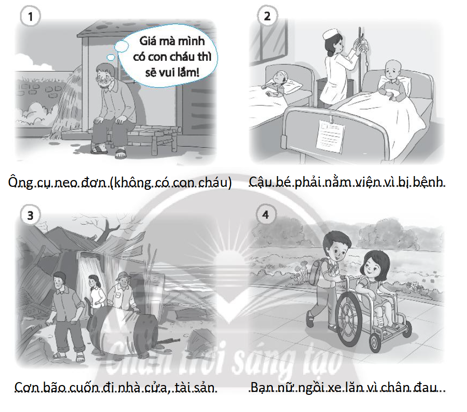 - Người trong tranh là ai? (Ông già, bạn nhỏ, ...) Đang trong hoàn cảnh nào? (neo đơn, bệnh tật, đau chân,...)