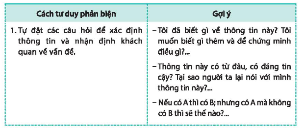 Thảo luận về cách tư duy phản biện khi đánh giá sự vật, hiện tượng theo hướng dẫn sau: