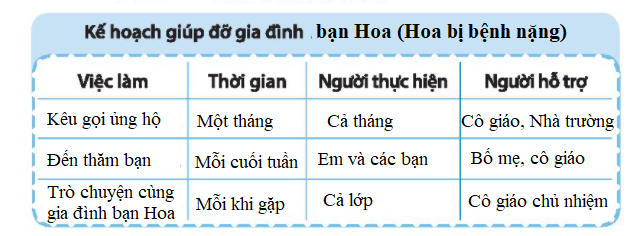 Hoàn thành kế hoạch của em về việc giúp đỡ một gia đình gặp hoàn cảnh khó khăn.