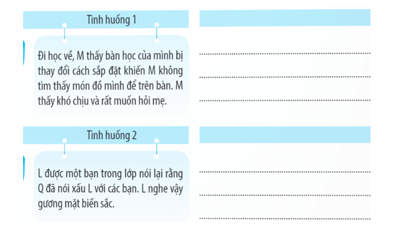 Hãy viết ra cách em điều chỉnh cảm xúc trong mỗi tình huống để có thể ứng xử đúng mực và đóng vai thể hiện cách điều chỉnh cảm xúc của em.