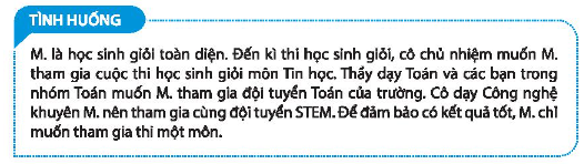 Đóng vai M. để xử lý tình huống: M. cần có hành động, suy nghĩ, thái độ như nào trước gợi ý, lời mời của bạn bè thầy cô ? M. cần có quyết định như nào trước những lời mời đó ?