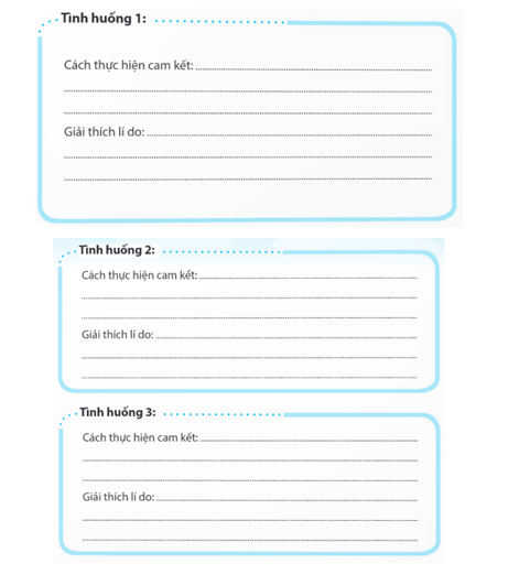 Viết cảm xúc của em khi thực hiện những cam kết đặt ra trong một tình huống cụ thể: