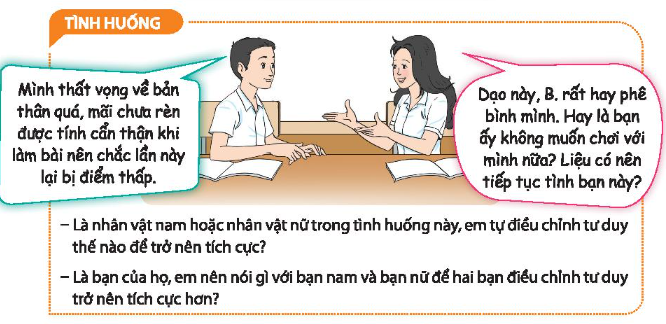 + Nếu là nhân vật nam hoặc nhân vật nữ trong tình huống em điều chỉnh tư duy như thế nào để trở nên tích cực hơn ?