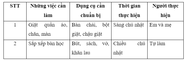 Chia sẻ và xin ý kiến của người thân về kế hoạch lao động dọn dẹp nhà cửa em đã lập. Cùng người thân thực hiện kế hoạch đặt ra.