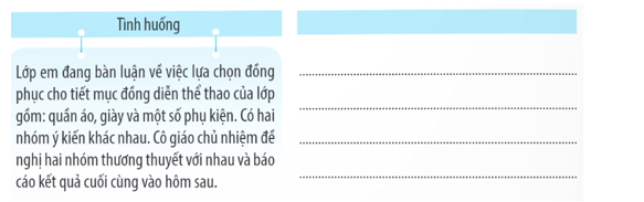 Viết những ý kiến quan trọng mà em sẽ nói để thương thuyết nhóm bạn.