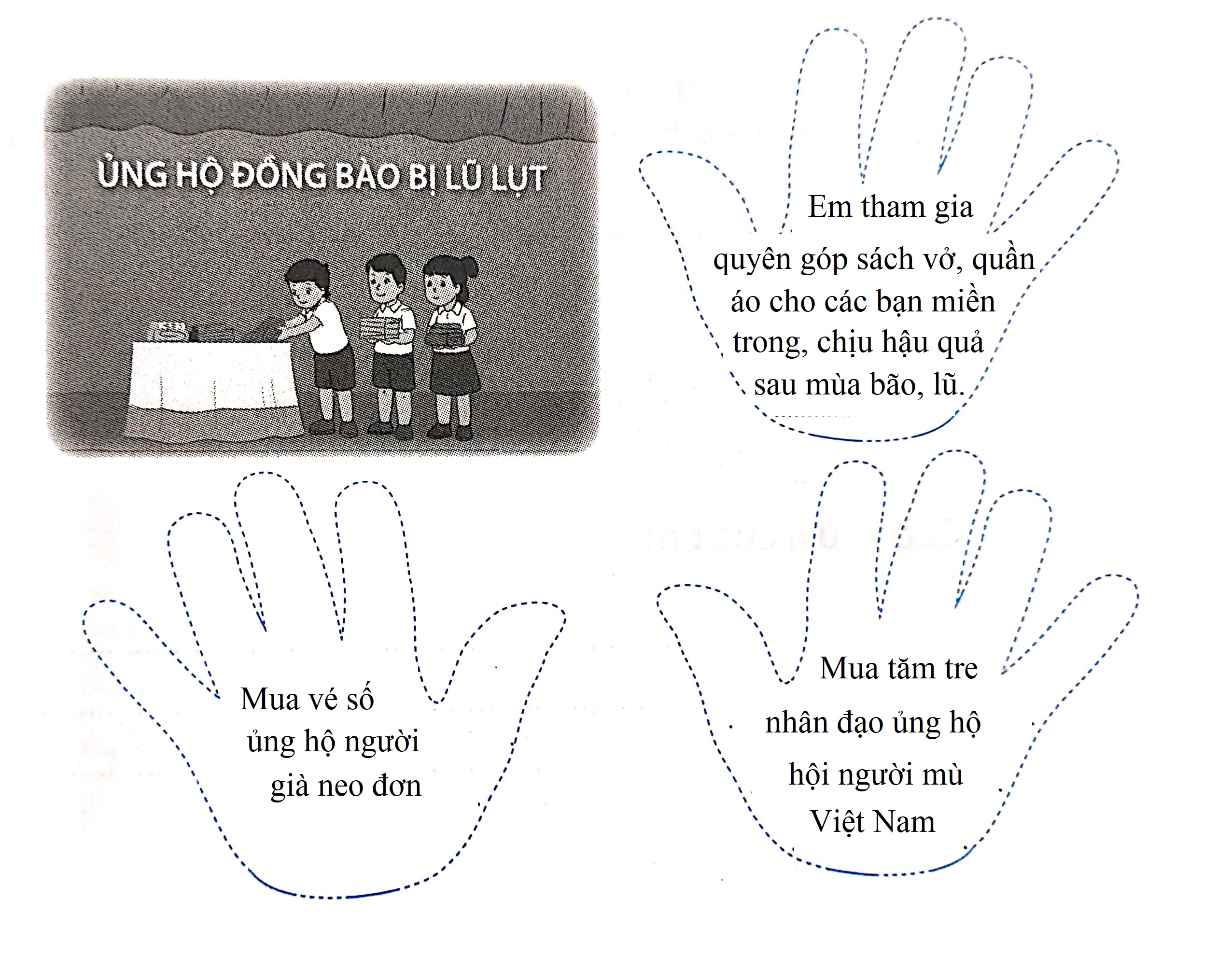 Viết ba việc em có thể làm để giúp đỡ những người gặp hoàn cảnh khó khăn.