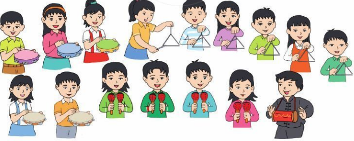 Xem tranh rồi kiểm đếm số lượng mỗi loại nhạc cụ mà các bạn đang cầm và gih lại kết quả: