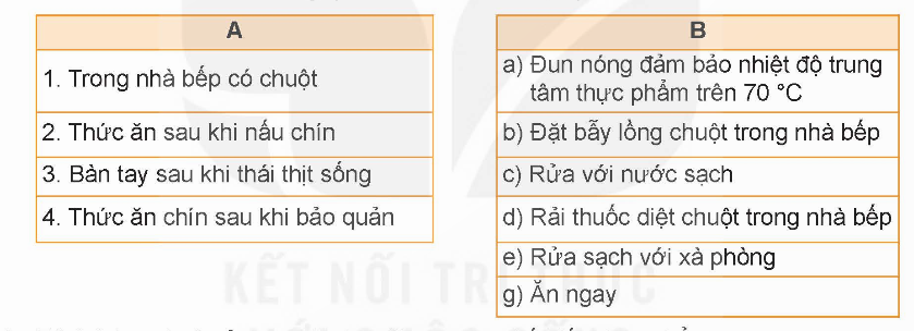 Với mỗi tình huống ở cột A, hãy lựa chọn một phương án phù hợp nhất ở cột B, sao cho đảm bảo an toàn trong quá trình chế biến thực phẩm. Giải thích.
