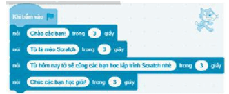 thì chú mèo Scratch bắt đầu nói các câu thoại?