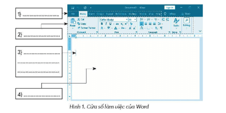 Điền cụm từ thích hợp vào chỗ chấm để chú thích cho cửa sổ làm việc của Word trong Hình 1.