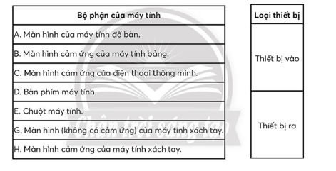 Ghép mỗi bộ phận của máy tính ở cột bên trái với loại thiết bị tương ứng ở cột bên phải.