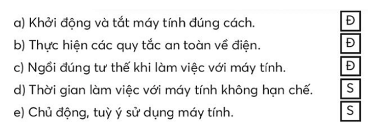 Đúng ghi Đ, sai ghi S. Một lưu ý khi sử dụng máy tính: