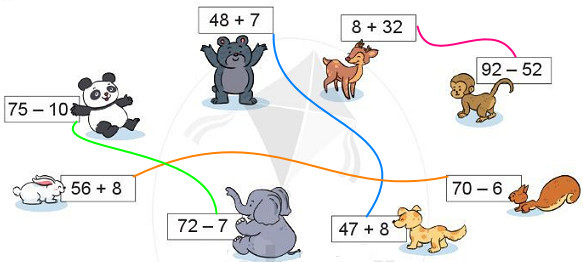 Thực hiện tính nhẩm tìm kết quả của các phép tính rồi nối các phép tính có kết quả bằng nhau lại với nhau.