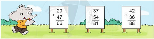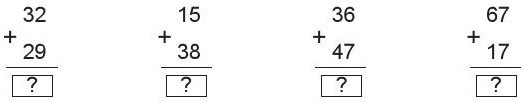 \(\begin{array}{*{20}{c}}{ + \begin{array}{*{20}{c}}{58}\\{26}\end{array}}\\\hline{\,\,\,84}\end{array}\) \(\begin{array}{*{20}{c}}{ + \begin{array}{*{20}{c}}{66}\\{25}\end{array}}\\\hline{\,\,\,91}\end{array}\)