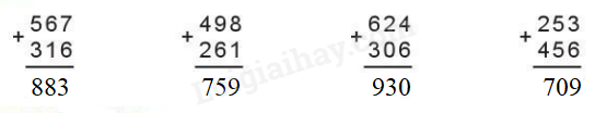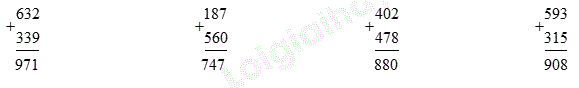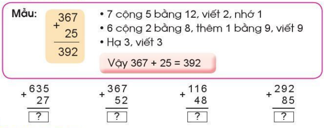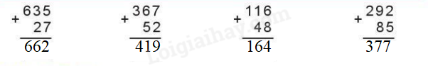Cộng các số thẳng cột theo thứ tự từ phải sang trái.
