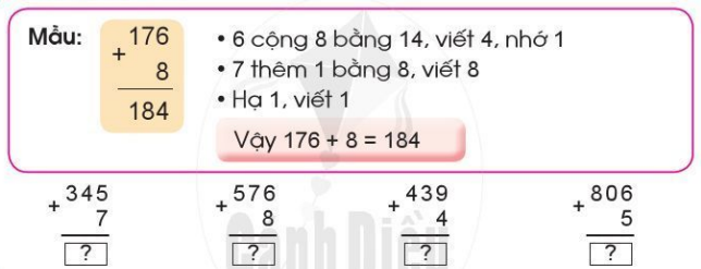 Cộng các chữ số thẳng cột theo thứ tự từ phải sang trái.