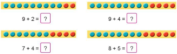 - Để tính 9 + 2 ta đếm thêm 2 bắt đầu từ 9.