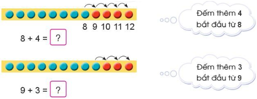 - Để tính 8 + 5 ta đếm thêm 5 bắt đầu từ 8.