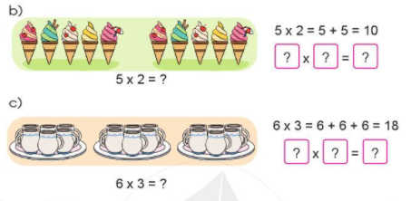 Nêu phép tính nhân thích hợp với mỗi tranh vẽ: