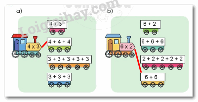 - Đếm số người trong mỗi cặp và số cặp rồi viết phép nhân thích hợp.