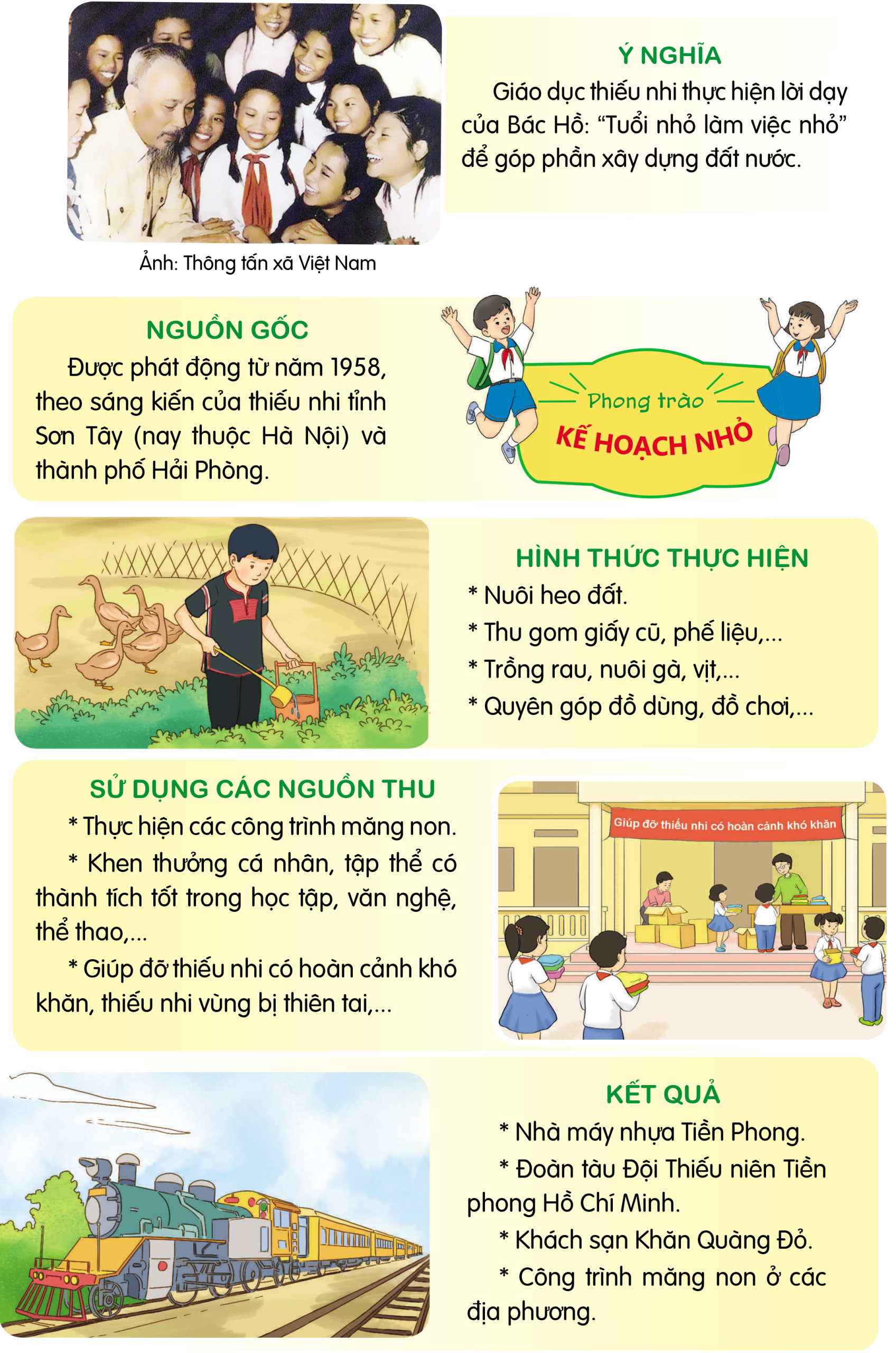 Bài đọc viết về nội dung của phong trào kế hoạch nhỏ.