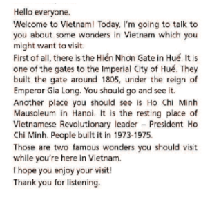 (Thu thập thông tin về các địa danh ở đất nước của bạn. Chuẩn bị và đưa ra bài thuyết trình của bạn.)