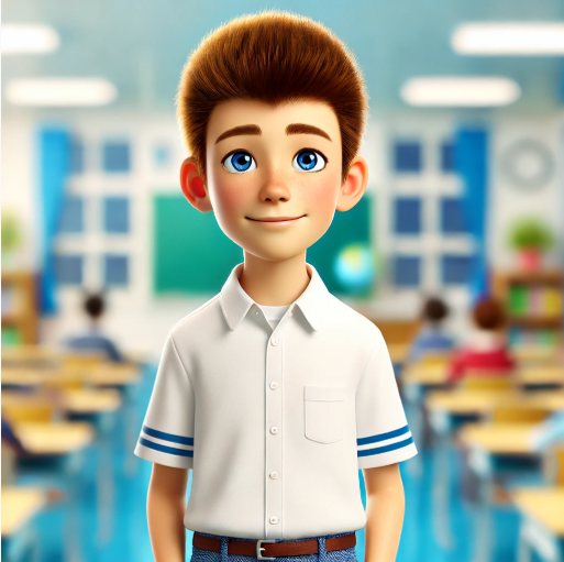 Bạn ấy cao và gầy. Bạn ấy có mái tóc ngắn màu nâu và đôi mắt to màu xanh lam.