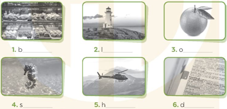 (Viết các từ dưới các bức tranh, bắt đầu bằng các chữ cái cho sẵn. Sau đó đọc to các từ, chú ý đến các âm /h/ và /r/.)