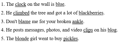 1. Single-underline the words having the sound /bl/ and double-underline the words having the sound /kl/ in the following sentences. Then read them aloud.