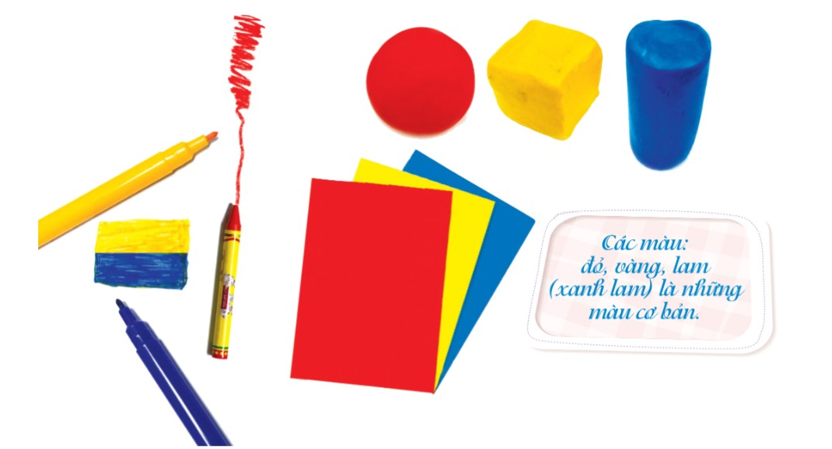 Dùng mắt quan sát các hình và nhận biết các màu có sẵn trong hình, sau đó đọc tên các màu cơ bản