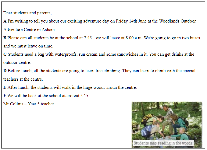 A Tôi viết thư này để thông báo cho bạn nghe về ngày phiêu lưu thú vị của chúng ta vào thứ Sáu ngày 14 tháng 6 tại Trung tâm Phiêu lưu Ngoài trời Woodlands ở Asham.