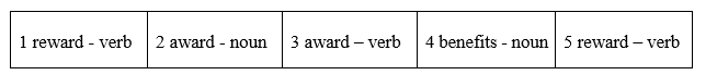 5 Complete the sentences using the correct form of benefit, reward and award. Write verb or noun.