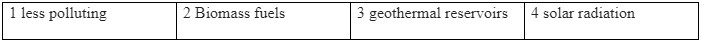 1.Complete the table with Fossil fuels or Alternative energy sources.