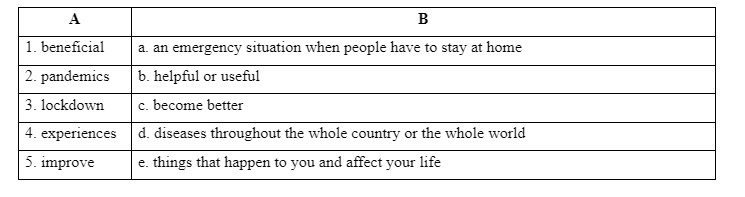 (Nối mỗi từ ở cột A với nghĩa của nó ở cột B.)