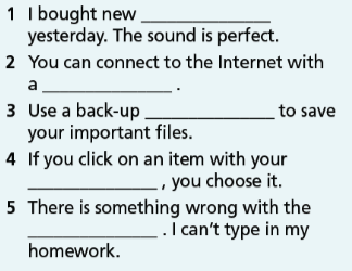5. Fill in each gap with mouse, router, keyboard, USB flash drive or speaker.