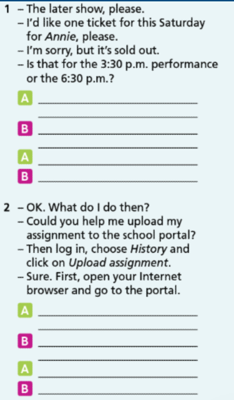 (Đặt các câu vào đúng trật tự để hoàn thành đoạn hội thoại.)
