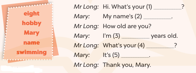 Mary: My name’s Mary. (Tên của em là Mary ạ.)