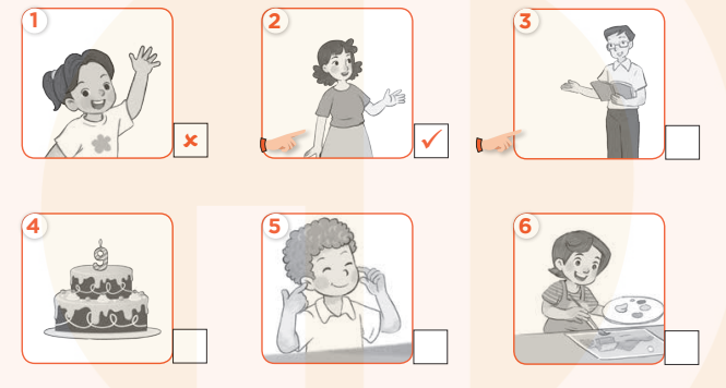 (Nghe và đánh dấu tích hoặc gạch chéo.)