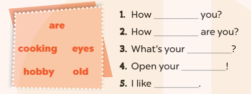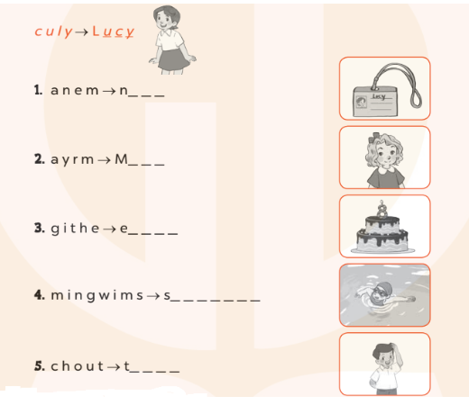 Look, write and read. Read an complete. Listen and tịc or cross. Listen and number. Interview you classmate. Ask and answer. Tell your classmate to do actions.