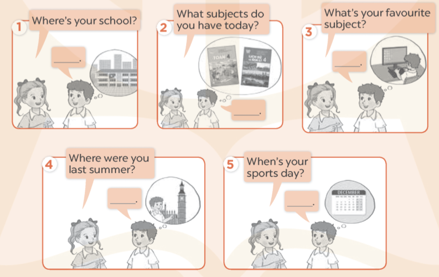 5. A: When’s your sports day? (Khi nào là ngày thể thao của bạn?)