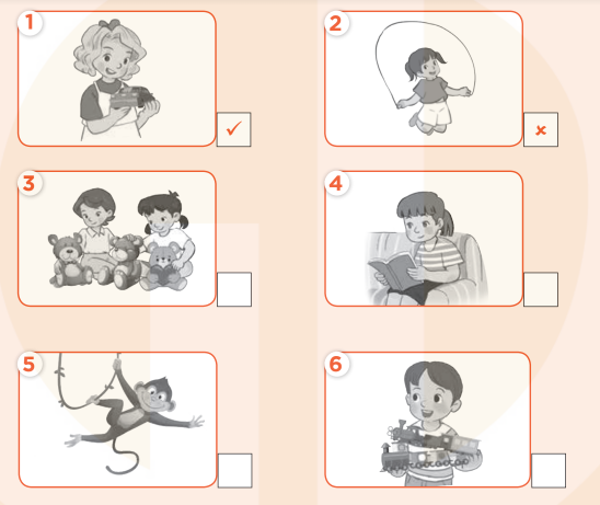(Nghe và đánh dấu tích hoặc dấu gạch chéo.)