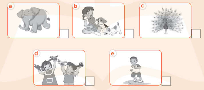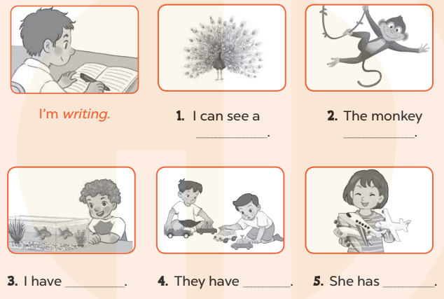 1. I can see a peacock. (Tôi có thể nhìn thấy một con công.)