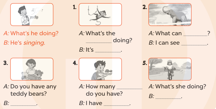 1. A: What’s the monkey doing ? (Con khỉ đang làm gì vậy?)