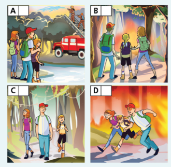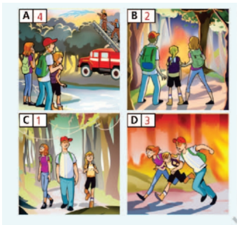 4. Listen to Kelly telling the story of a forest fire. Put picture (A-D) in the order.