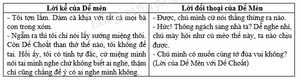 - Nhân vật là các loài vật đã được nhân hoá: trong văn bản Bài học đường đời đầu tiên có các nhân vật là Dế Mèn, Dế Choắt, Chị Cốc, chị Cào Cào.